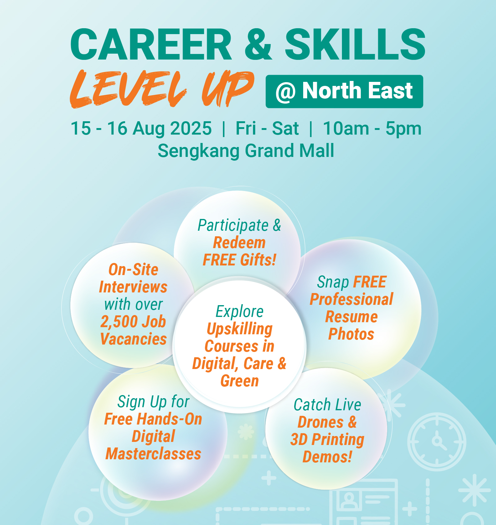 Join us for an exciting two-day event at Sengkang Grand Mall that brings together job opportunities, skills training, and career support - all under one roof!