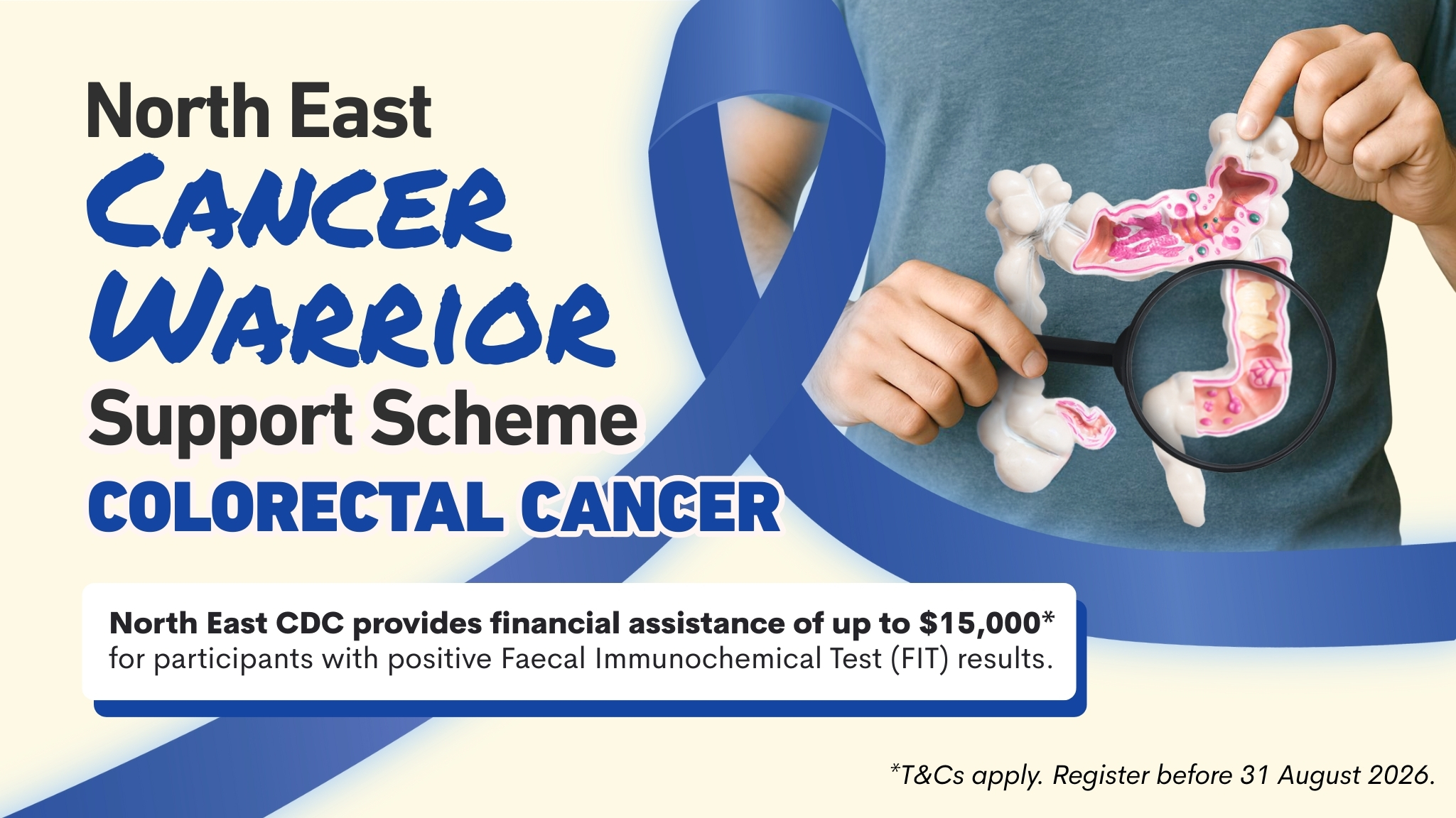 Building on the success of the North East Cancer Warrior Support Scheme for Breast Cancer, North East Community Development Council (CDC) and SingHealth are expanding their collaboration to include Colorectal Cancer, with a focus on ensuring patients have peace of mind whilst going through screening, assessment, diagnosis, treatment and recovery.